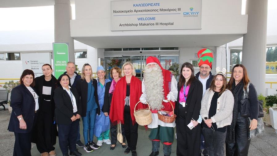 Ταυτόχρονα, σε συνεργασία με το Ίδρυμα Αλκίνοος Αρτεμίου, για παιδιά με ογκολογικές και αιματολογικές παθήσεις και την Πρέσβειρα της Φινλανδίας διευθετήθηκε η επίσκεψη του Άγιου Βασίλη στο Μακάρειο Νοσοκομείο όπου μοίρασε δώρα στα παιδιά που νοσηλεύονται στο Παιδογκολογικό Τμήμα.