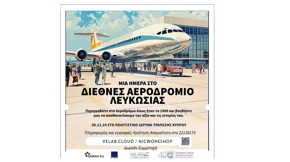 Στο πλαίσιο της σειράς δράσεων της έκθεσης Κύπρος Νήσος, το Πολιτιστικό Ίδρυμα Τραπέζης Κύπρου ανακοινώνει το συμμετοχικό εργαστήριο «Μια μέρα στο αεροδρόμιο Λευκωσίας» που θα πραγματοποιηθεί το Σάββατο 30 Νοεμβρίου.