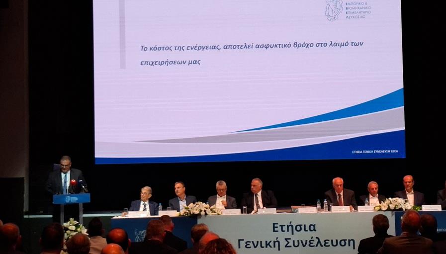 Χαιρετισμό στη Γενική Συνέλευση του ΕΒΕΛ απηύθυνε ο Υπουργός Ενέργειας, Εμπορίου και Βιομηχανίας Γιώργος Παπαναστασίου, ο Πρόεδρος του ΚΕΒΕ Σταύρος Σταύρου και ο Πρόεδρος του ΕΟΑ Λευκωσίας Κωνσταντίνος Γιωρκάτζης.