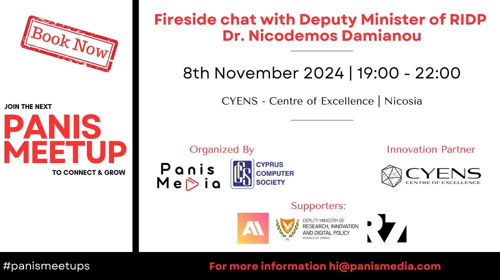 Η κοινότητα τεχνολογίας και νεοφυών επιχειρήσεων (startup) στην Κύπρο προσκαλείται στο επόμενο #PanisMeetups, το οποίο θα πραγματοποιηθεί την Παρασκευή, 8 Νοεμβρίου 2024, από τις 19:00 έως τις 22:00 στο CYENS Centre of Excellence στη Λευκωσία.