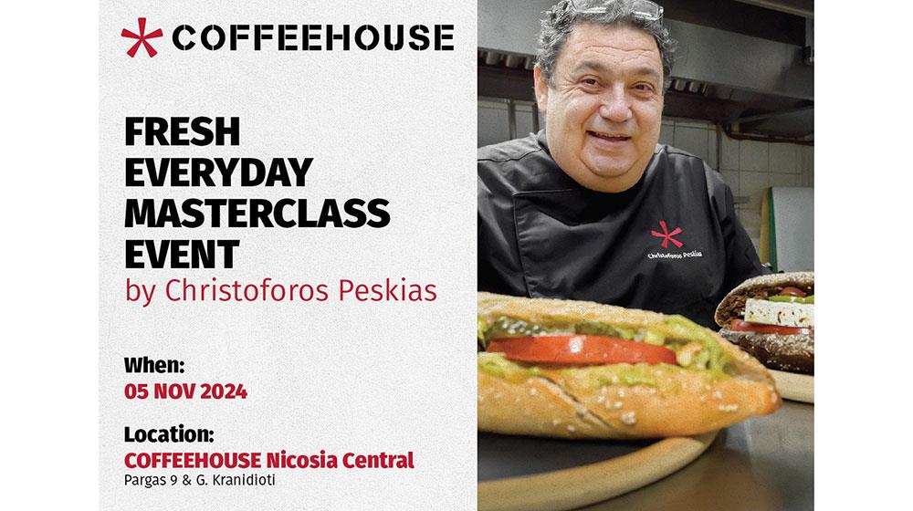 Στο Masterclass παρουσιάστηκαν 3 νέες συνταγές από την ανανεωμένη γκάμα των #FreshNRefreshed σάντουιτς της COFFEEHOUSE, παρουσία των τοπικών ΜΜΕ, εκλεκτών καλεσμένων αλλά και 10 τυχερών θαυμαστών του Σεφ που κληρώθηκαν από τα social media της COFFEEHOUSE.