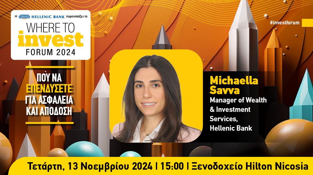 Στις 13 Νοεμβρίου 2024, στο Hilton Nicosia, μια μοναδική συνάντηση κορυφαίων ειδικών και θεσμικών επενδυτών θα λάβει χώρα, κατά το Where to Invest Forum 2024 που παρουσιάζει η Ελληνική Τράπεζα.