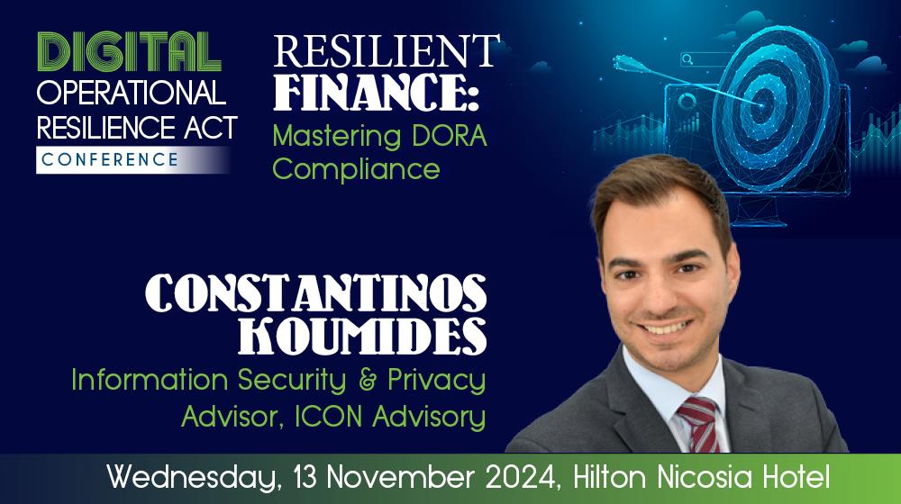 Στο πλαίσιο του συνεδρίου "Resilient Finance: Mastering DORA Compliance", που θα πραγματοποιηθεί την Τετάρτη, 13 Νοεμβρίου 2024, στο Hilton Nicosia, ο Κωνσταντίνος Κουμίδης, Σύμβουλος Ασφάλειας Πληροφοριών & Ιδιωτικότητας στην ICON Advisory, θα παρουσιάσει την ομιλία του με τίτλο "Implementing a robust ict risk management framework".