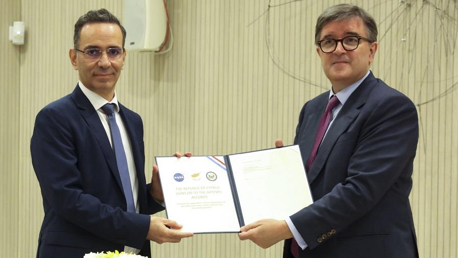 Σε επίσημη τελετή που πραγματοποιήθηκε στο Προεδρικό Μέγαρο, σε απευθείας σύνδεση με την Εθνική Διοίκηση Αεροναυτικής και Διαστήματος (ΝASA), η Κυπριακή Δημοκρατία, μέσω του Υφυπουργού Έρευνας, Καινοτομίας και Ψηφιακής Πολιτικής, υπέγραψε την προσχώρησή της στις Συμφωνίες Άρτεμις (Artemis Accords) για το Διάστημα.
