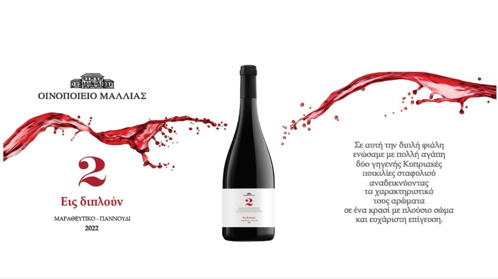 Με ένα μοναδικό κόκκινο κρασί υποδέχεται το φθινόπωρο το Οινοποιείο Μαλλιάς. Η νέα ετικέτα που υπογράφει το ιστορικό οινοποιείο της ΚΕΟ, φέρει το όνομα Εις Διπλούν καθώς σε αυτή τη φιάλη έχουν ενωθεί αρμονικά δύο γηγενής Κυπριακές ποικιλίες, το Μαραθεύτικο και το Γιαννούδι.