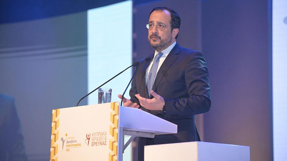 Στον χαιρετισμό του ο Προέδρος Χριστοδουλίδης ανέφερε ότι η εκδήλωση αυτή έχει καταστεί θεσμός, και τιμά και αναδεικνύει τον καθοριστικό ρόλο της έρευνας και της καινοτομίας για την ανάπτυξη της χώρας.