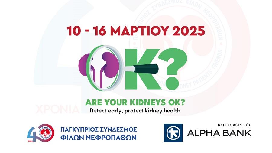 Με κεντρικό μήνυμα της Παγκόσμιας εκστρατείας «Είναι τα νεφρά σας καλά; Ανιχνεύστε έγκαιρα, προστατέψτε την υγεία των νεφρών σας» (Are Your Kidneys OK? Detect early, protect kidney health), η Alpha Bank Κύπρου, πέραν της οικονομικής της στήριξης, συμμετείχε ενεργά στη διεξαγωγή του Παγκύπριου Εράνου, διαθέτοντας το Δίκτυο Καταστημάτων της από τις 10 έως τις 21 Μαρτίου για την πώληση δελτίων εισφοράς αξίας €2, €5 και €10.