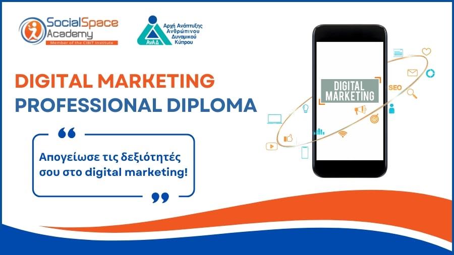 Για περισσότερες πληροφορίες σχετικά με τη δομή καθώς και τα οφέλη του προγράμματος, επισκεφθείτε την ιστοσελίδα https://www.socialspaceacademy.com/digital-marketing-diploma-cyprus ή επικοινωνήστε μαζί μας στο 22261088.
