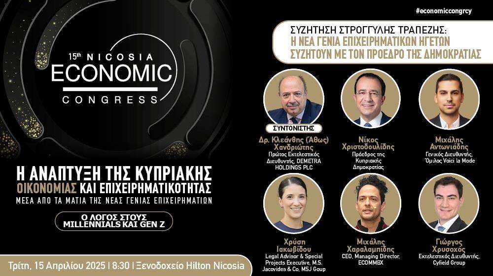 Το Nicosia Economic Congress επιστρέφει την Τρίτη, 15 Απριλίου 2025, για 15η χρονιά, με στόχο να σκιαγραφήσει την επικρατούσα κατάσταση της κυπριακής οικονομίας και να παραθέσει τις μελλοντικές της προοπτικές.
