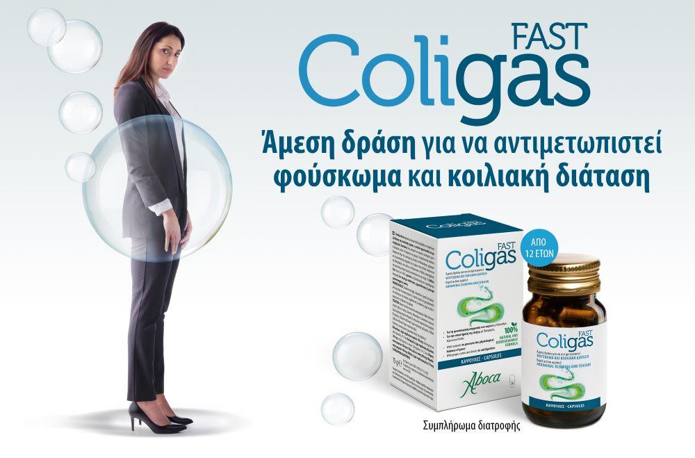 Αναζητώντας στη φύση τις απαντήσεις για την αντιμετώπιση του ενοχλητικού συμπτώματος, η Aboca δημιούργησε το καινοτόμο συμπλήρωμα διατροφής Coligas Fast, με ευεργετική δράση στην εντερική χλωρίδα και τον εντερικό βλεννογόνο.