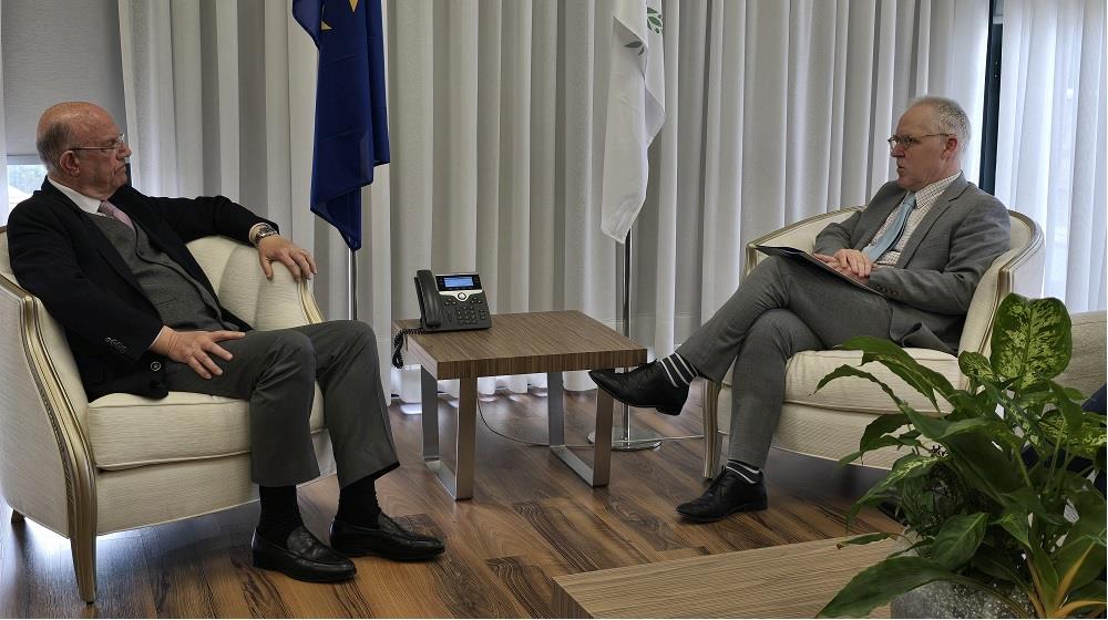 Θέματα διμερών σχέσεων και τρόπων περαιτέρω σύσφιξής τους σε θέματα οικονομικής συνεργασίας, συζήτησαν σε συνάντησή τους την Παρασκευή, ο Υπουργός Οικονομικών Μάκης Κεραυνός και ο νέος Ύπατος Αρμοστής του Ηνωμένου Βασιλείου στην Κύπρο, Μάικλ Τέϊθαμ, σύμφωνα με ανακοίνωση του Υπουργείου η οποία στάλθηκε τη Δευτέρα.