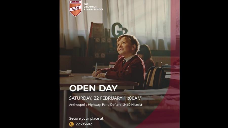 Το Grammar Junior School ανοίγει τις πόρτες του σε γονείς και παιδιά, το ερχόμενο Σάββατο 22 Φεβρουαρίου, από τις 11 π.μ. μέχρι τις 1 μ.μ. για όλους όσους ενδιαφέρονται να το επισκεφθούν, να δουν από κοντά τις εντυπωσιακές εγκαταστάσεις του και να ενημερωθούν για το πλούσιο ακαδημαϊκό του πρόγραμμα.