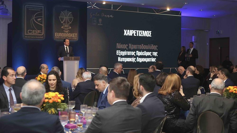 Ως επένδυση για την νέα γενιά του τόπου προσεγγίζει η κυβέρνηση την πραγματοποίηση του EuroBasket 2025 στην Κύπρο, διαμήνυσε ο Πρόεδρος της Δημοκρατίας Νίκος Χριστοδουλίδης, μιλώντας κατά το επίσημο δείπνο «Στον δρόμο για το FIBA EUROBASKET 2025», που πραγματοποιήθηκε το βράδυ της Τρίτης στο Προεδρικό.