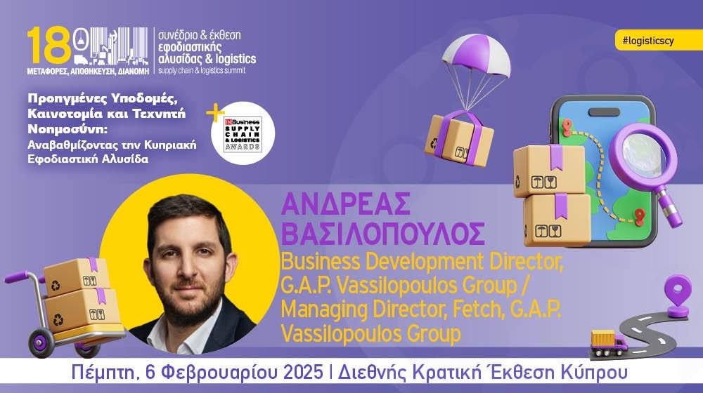 Μεταξύ αυτών και ο G.A.P. Vassilopoulos Group’. Ο Ανδρέας Βασιλόπουλος, Business Development Director, G.A.P. Vassilopoulos Group / Managing Director, Fetch, G.A.P. Vassilopoulos Group’ θα προβεί σε μια άκρως ενδιαφέρουσα παρουσίαση με τίτλο “Redefining Delivery: Bridging Flexibility and Efficiency with ‘Motion’”.