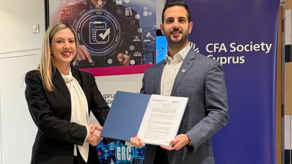 Ο Σύνδεσμος Χρηματοοικονομικών Αναλυτών CFA Κύπρου (CFA Society Cyprus) και ο Κυπριακός Σύνδεσμος Συμμόρφωσης (Cyprus Compliance Association - CCA) υπέγραψαν Μνημόνιο Συνεργασίας με στόχο την προώθηση των ηθικών και επαγγελματικών προτύπων στον χρηματοοικονομικό τομέα, καθώς και τη διαφάνεια, λογοδοσία και συμμόρφωση στις χρηματοπιστωτικές αγορές της Κύπρου.