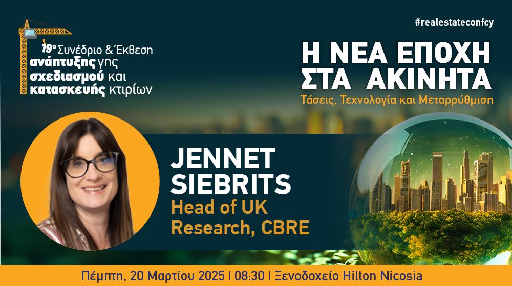 Ανάμεσά τους και η Head of UK Research του CBRE Jennet Siebrits. Η Siebrits θα παρουσιάσει στο κοινό το Global Real Estate Outlook 2025 το οποίο θα καταγράψει όλα όσα χρειάζεται να γνωρίζετε: Τις βασικές τάσεις, τα ρίσκα και τις επενδυτικές ευκαιρίες.