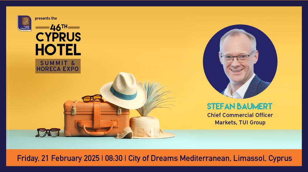 Μην χάσετε την ευκαιρία να παρακολουθήσετε την παρουσίαση του Stefan Baumert στο 46ο Hotel Summit & HORECA Expo και να ανακαλύψετε πώς η TUI διαμορφώνει το τουριστικό τοπίο της Κύπρου!