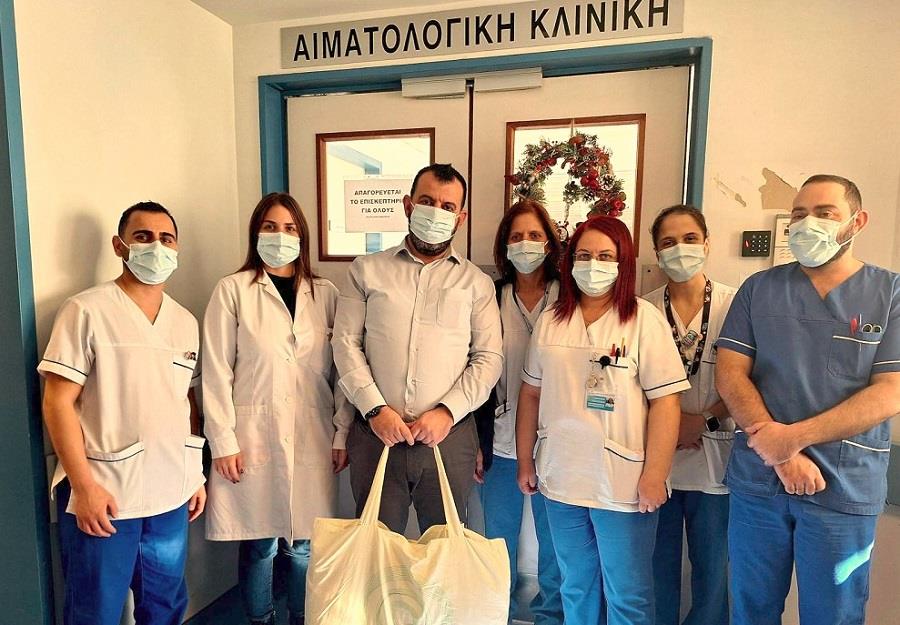 Τα ειδικά μαξιλάρια μαζί με τις αντιαλλεργικές μαξιλαροθήκες παρέδωσε ο διευθυντής METRO Στροβόλου κ. Μιχάλης Μιχαήλ στους επικαθήκοντες ιατρούς και νοσηλευτές του Αιματολογικού Θαλάμου του Γενικού Νοσοκομείου Λευκωσίας τον περασμένο Δεκέμβριο.