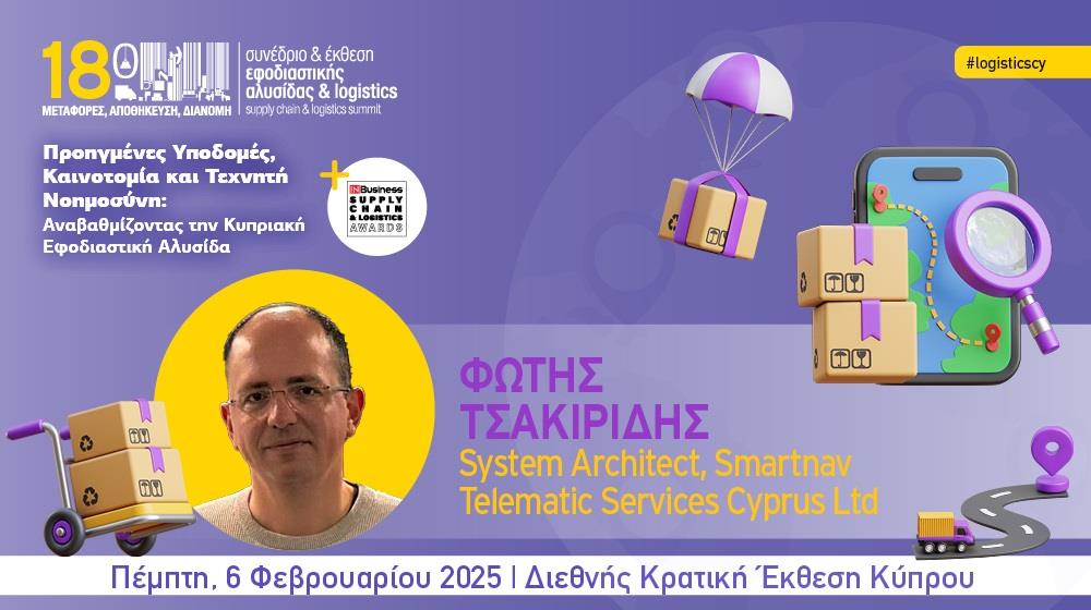 Το 18ο Συνέδριο & Έκθεση Εφοδιαστικής Αλυσίδας & Logistics πραγματοποιείται στις 6 Φεβρουαρίου 2025 στη Διεθνή Κρατική Έκθεση Κύπρου και σκοπό έχει να εξερευνήσει με το κοινό του το πώς μπορούν να εφαρμοστούν οι καινοτόμες ιδέες ώστε να μετατραπεί η κυπριακή εφοδιαστική αλυσίδα σε μια έξυπνη, ευέλικτη και ανθεκτική υποδομή, επιλύοντας προβλήματα που για χρόνια ταλανίζουν τον τομέα.