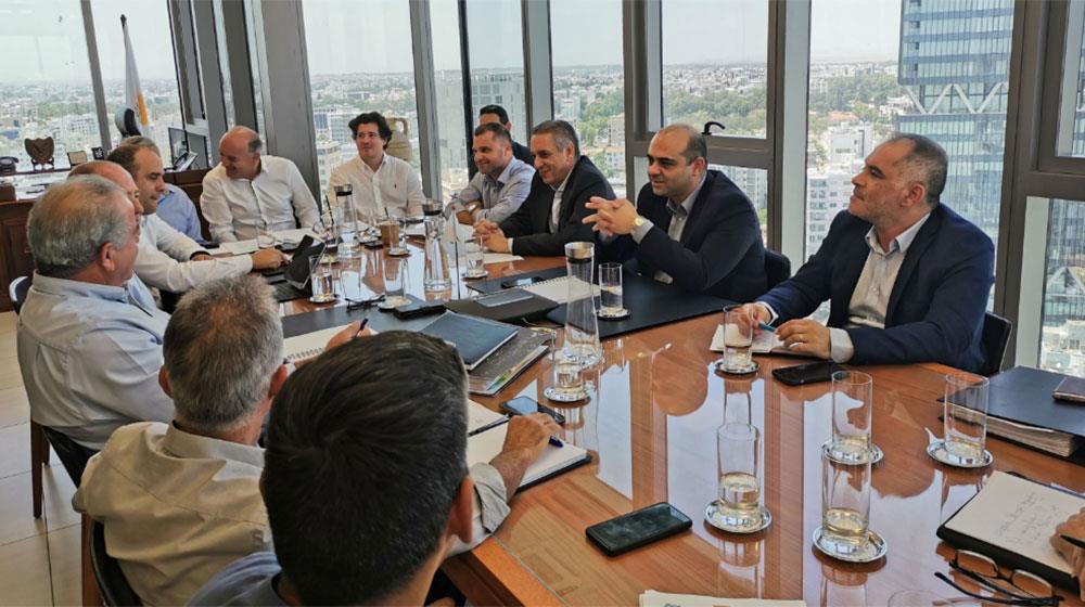 Ο κ. Παναγιώτου συναντήθηκε στο γραφείο του στο Υπουργείο Εργασίας με την Ομοσπονδία Συνδέσμων Εργολάβων Οικοδομών Κύπρου και τις συντεχνίες της οικοδομικής βιομηχανίας, στο πλαίσιο της μεσολαβητικής προσπάθειας του για εξεύρεση λύσης και ανανέωσης της συλλογικής σύμβασης.