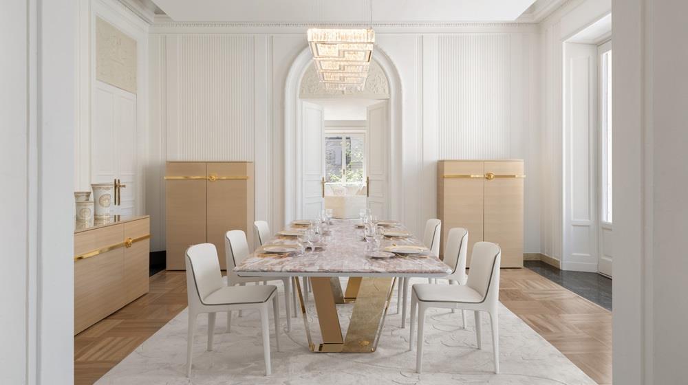 Η συλλογή Versace Home ολοκληρώθηκε φυσικά με τα εντυπωσιακά έπιπλα του οίκου, τα οποία συνδυάζουν κλασικά αλλά και μοντέρνα στοιχεία, καθιστώντας τα σύγχρονα αλλά και διαχρονικά κομμάτια.