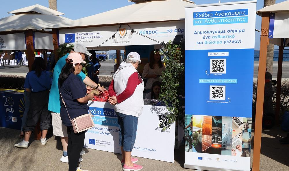 Στο πλαίσιο της εκδήλωσης, οι επισκέπτες είχαν τη δυνατότητα να μάθουν μεταξύ άλλων για το Σχέδιο Ανάκαμψης και Ανθεκτικότητας (ΣΑΑ) Κύπρου και πώς αυτό αντικατοπτρίζει την ολοκληρωμένη προσέγγιση της Κυπριακής Δημοκρατίας για την αντιμετώπιση των επιπτώσεων που προέκυψαν από την πανδημία του COVID-19 και την προώθηση της βιώσιμης ανάπτυξης. Το Σχέδιο αντιπροσωπεύει μια δέσμη μέτρων/έργων με προϋπολογισμό ύψους €1,22 δισεκατομμυρίων, που διατίθενται στην Κύπρο για την περίοδο 2021-2026 από τον Μηχανισμό Ανάκαμψης και Ανθεκτικότητας της Ευρωπαϊκής Ένωσης. Το Σχέδιο περιλαμβάνει μεταρρυθμίσεις και επενδύσεις σε διάφορους τομείς όπως η υγεία, η εκπαίδευση, η καινοτομία, αλλά και μία σειρά άλλων τομέων που συμβάλλουν στην πράσινη και ψηφιακή μετάβαση, με στόχο την ενίσχυση της ανταγωνιστικότητας και της ανθεκτικότητας της οικονομίας. Το ΣΑΑ εστιάζει επίσης στην ενίσχυση της κοινωνικής συνοχής μέσω προγραμμάτων που απευθύνονται σε ευάλωτες ομάδες και της βιώσιμης ανάπτυξης με περιβαλλοντικές και κλιματικές επενδύσεις. Με την υλοποίηση αυτών των μέτρων, η Κύπρος επιδιώκει να θέσει τα θεμέλια για ένα βιώσιμο και ανθεκτικό μέλλον για τους πολίτες της, στο πλαίσιο μιας ευρύτερης ευρωπαϊκής προσπάθειας για ανάκαμψη και ανάπτυξη.
