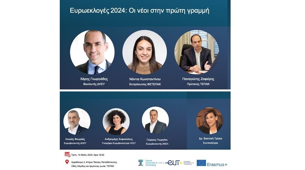 Εκδήλωση με θέμα «Ευρωεκλογές 2024: Οι νέοι/νέες στην πρώτη γραμμή», διοργανώνει το Τεχνολογικό Πανεπιστήμιο Κύπρου (ΤΕΠΑΚ) και το Γραφείο Διεθνούς Κινητικότητας Erasmus του Πανεπιστημίου.