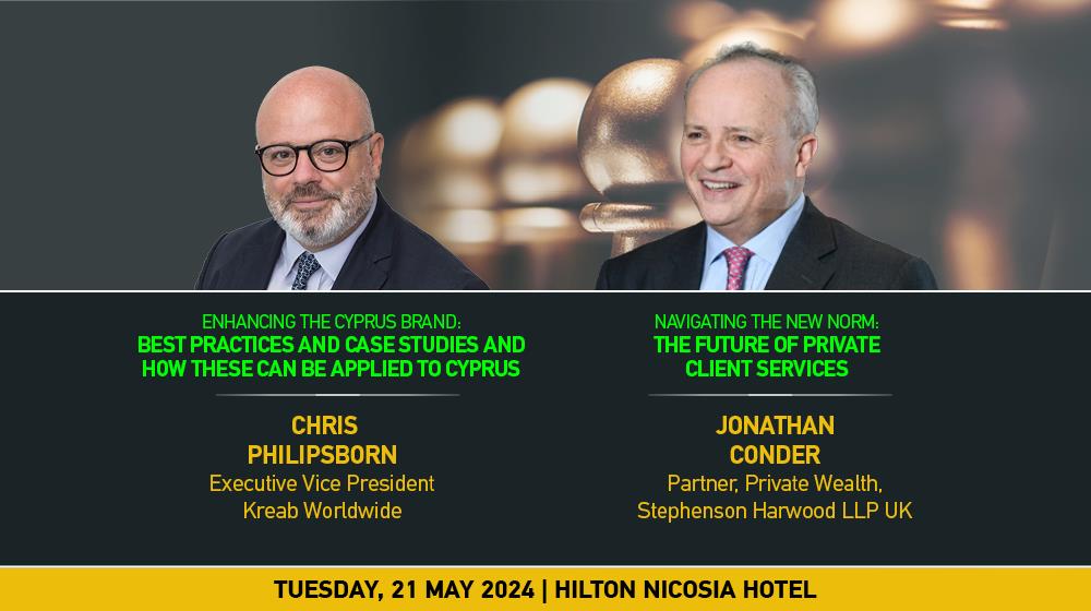 Mε θεματική «Professional and Financial Services: Working together to Make Cyprus an Attractive International Business Centre», το συνέδριο πραγματοποιείται την 21η Μαΐου 2024 και υπόσχεται να διερευνήσει όπως κάθε χρόνο άλλωστε τα πολιτικά, εμπορικά και εταιρικά ζητήματα του Κλάδου, φέρνοντας στο προσκήνιο τις εμπειρίες και τις συστάσεις διεθνών ηγετών της επιχειρηματικότητας.