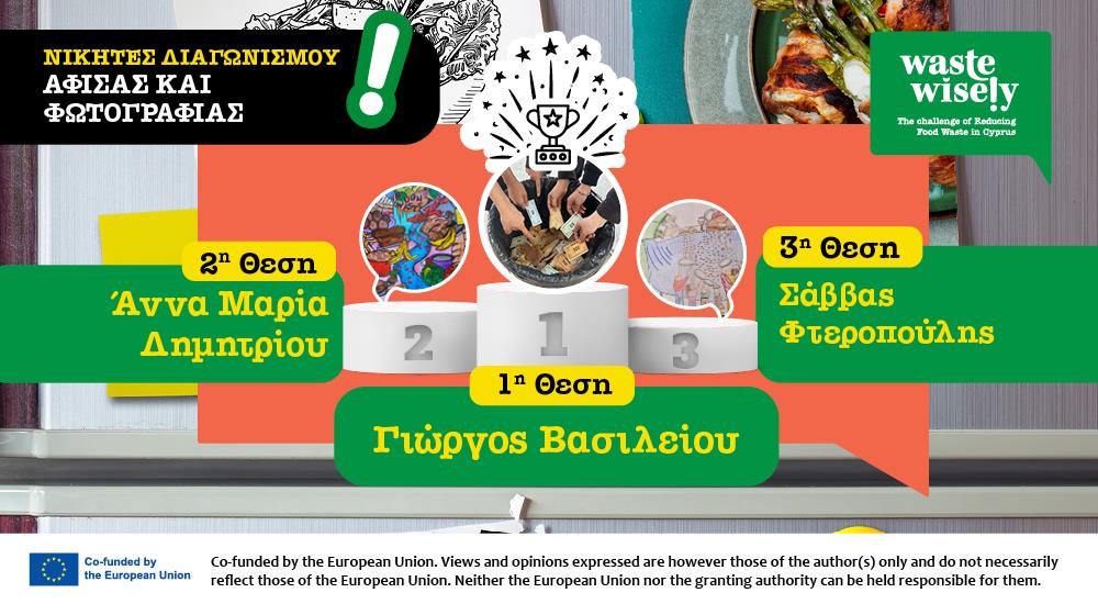 Ο διαγωνισμός αφίσας και φωτογραφίας του έργου Waste Wisely Cyprus ολοκληρώθηκε με επιτυχία. Χάρη στη δημιουργικότητα των νεαρών συμμετεχόντων, επιτεύχθηκε ο στόχος προβολής της έξυπνης κατανάλωσης τροφίμων και ανάδειξης του προβλήματος σπατάλης που καταγράφεται στις σύγχρονες κοινωνίες.
