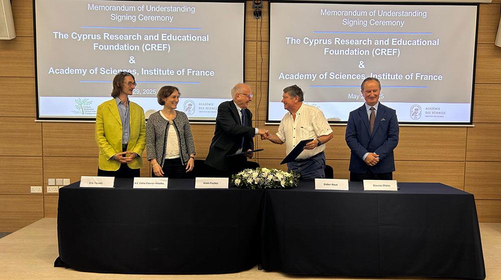 Μνημόνιο Συνεργασίας υπέγραψαν η Γαλλική Ακαδημία Επιστημών (Institut de France) και το Κυπριακό Ίδρυμα Έρευνας και Εκπαίδευσης (CREF), μητρικός οργανισμός του Ινστιτούτου Κύπρου (ΙΚυ).