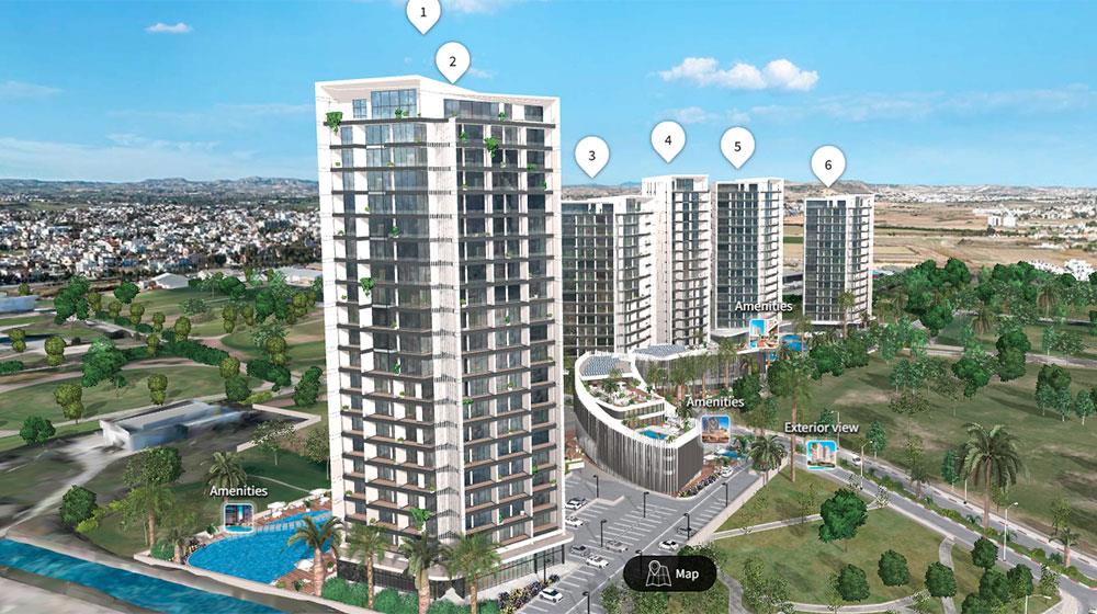 - Έναv πύργο 17 ορόφων, με 85 οικιστικά διαμερίσματα, ύψους 75 μέτρων ( Horizon 4)