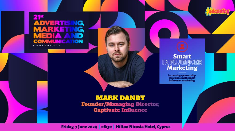 Κατά το Advertising, Marketing, Media and Communication Conference ο Ιδρυτής/Διευθύνων Σύμβουλος, της Captivate Influence θα διερευνήσει το πώς ακριβώς μπορούν οι Οργανισμοί να χρησιμοποιήσουν το έξυπνο μάρκετινγκ επιρροής για να διασφαλίσουν ότι οι επωνυμίες τους αξιοποιούν την εν λόγω τακτική, με τον σωστό τρόπο. Στο πλαίσιο της ομιλίας, θα εξετάσει και το κατά πόσο η χορηγία μάρκας είναι η σωστή οδός για τα brand στην προσπάθειά τους να προσεγγίσουν τους πολυπόθητους καταναλωτές της γενιάς Z.