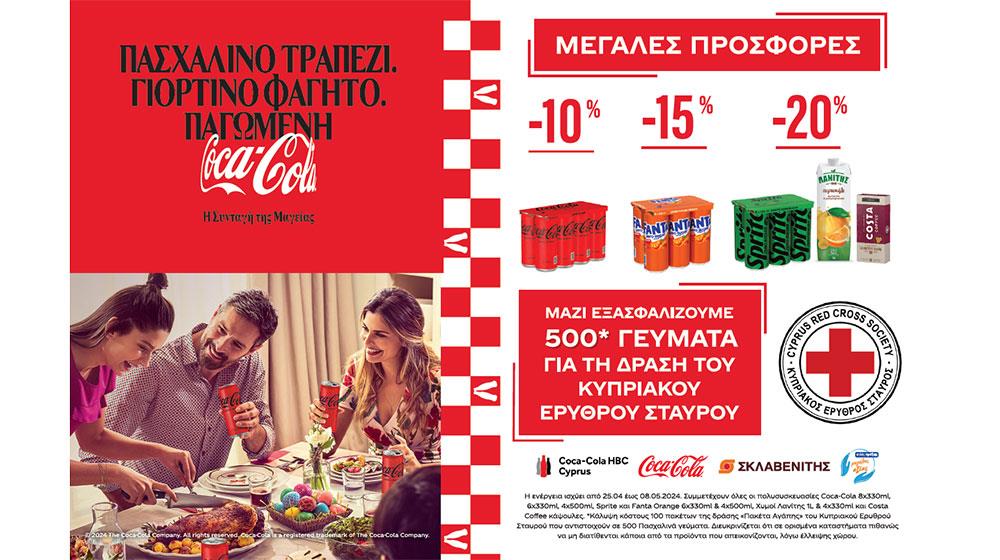 Κάνοντας πράξη το κεντρικό μήνυμα της καμπάνιας της Coca-Cola «Η Συνταγή της Μαγείας» με στόχο να φέρει το γιορτινό φαγητό στο Πασχαλινό τραπέζι με παγωμένη Coca-Cola σε κάθε σπίτι, η Coca-Cola HBC Κύπρου ενώνει τις δυνάμεις της με τα καταστήματα Σκλαβενίτη για καλό σκοπό. Μέσα από αυτή τη συνέργεια που αφορά σε επιλεγμένα προϊόντα από το χαρτοφυλάκιο της Coca-Cola HBC Κύπρου, καλύπτει το κόστος για 100 πακέτα αγάπης, τα οποία ισοδυναμούν με 500 Πασχαλινά γεύματα, τα οποία θα διοχετευτούν σε ευάλωτες οικογένειες που το έχουν ανάγκη μέσω της δράσης «Πακέτα Αγάπης» του Κυπριακού Ερυθρού Σταυρού.