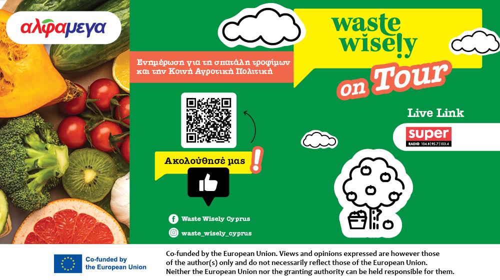 Το ευρωπαϊκό έργο Waste Wisely Cyprus, με τη στήριξη των Υπεραγορών Αλφαμέγα και παρέα τον Super FM, διοργανώνουν μια σειρά εκδηλώσεων με στόχο την ενημέρωση και ευαισθητοποίηση του κοινού σχετικά με τη μείωση της σπατάλης τροφίμων και τις αρνητικές της επιπτώσεις σε κοινωνικό, περιβαλλοντικό και οικομονικό επίπεδο.