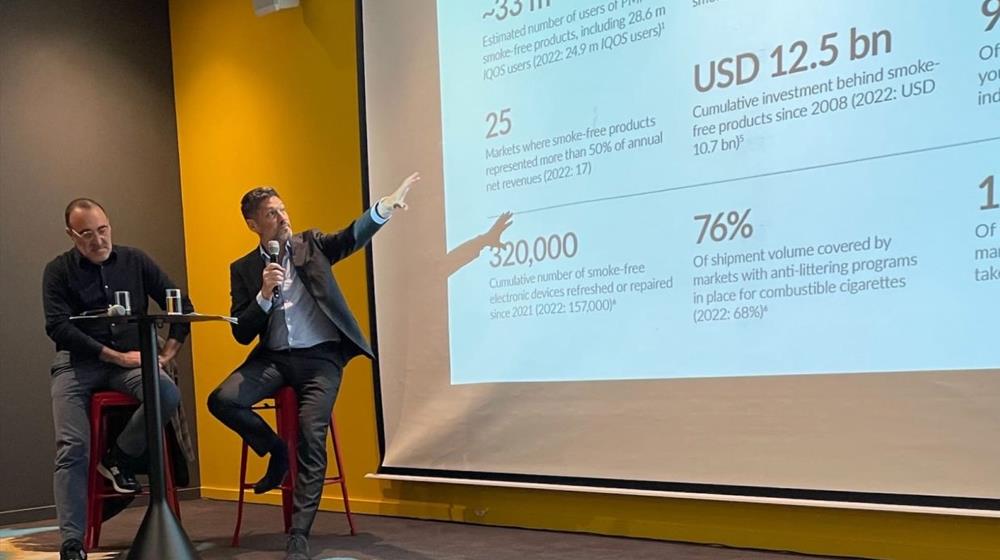Τα πιο πάνω στοιχεία αναφέρθηκαν πρόσφατα σε ενημερωτική εκδήλωση που πραγματοποίησε η Philip Morris International στο Παρίσι με αφορμή την παρουσίαση της Ενιαίας Έκθεσης Βιώσιμης Ανάπτυξης για το 2023 (Integrated Report 2023) από τους Tommaso Di Giovanni, PMI Vice-President International Communications και Miguel Coleta, PMI Global Director Sustainability.