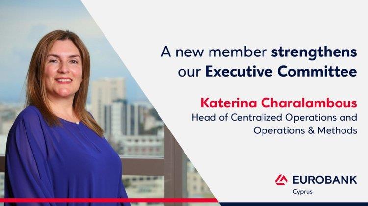Η Eurobank Κύπρου ανακοίνωσε ότι διόρισε την Κατερίνα Χαραλάμπους ως Επικεφαλής των Κεντροποιημένων Υπηρεσιών και της Οργάνωσης και Μεθόδων της Εκτελεστικής Επιτροπής.