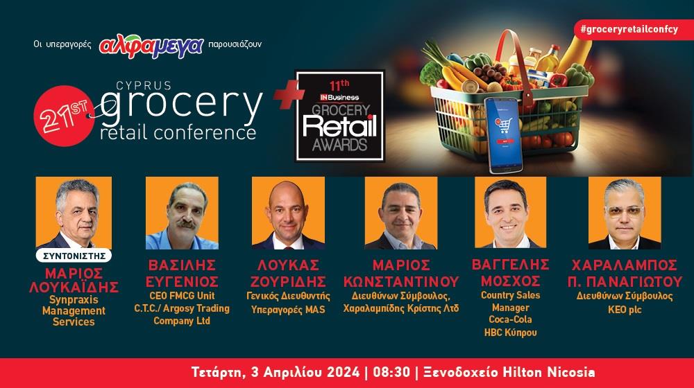 Το Cyprus Grocery Retail Conference θα πραγματοποιηθεί στις 3 Απριλίου στο Hilton Nicosia, με στόχο να παρουσιάσει τις τάσεις οι οποίες συμβάλλουν στην επιτυχή μετάβαση του τομέα στη νέα εποχή υπεύθυνης, βιώσιμης, πράσινης και ψηφιακής ανάπτυξης.