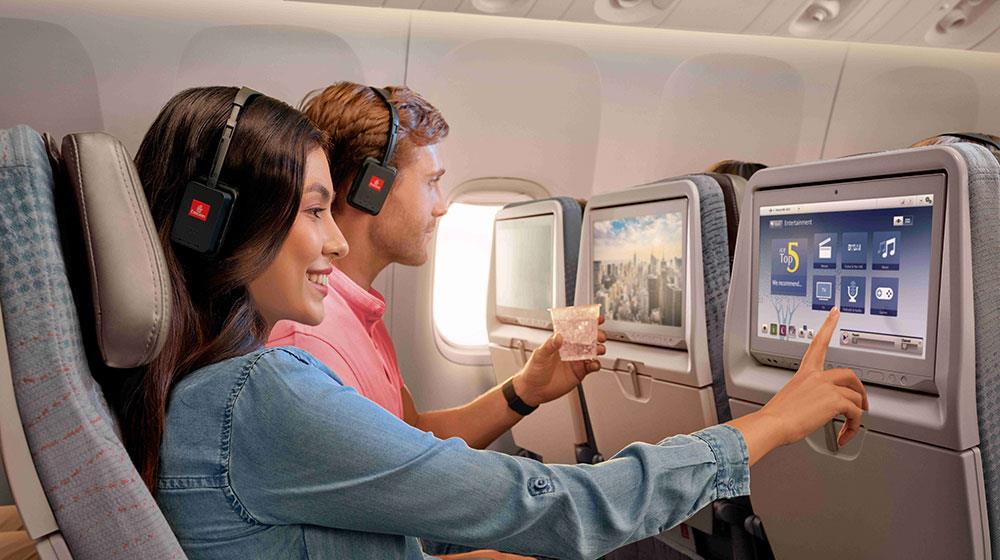 Η Emirates ξεκίνησε να παρέχει υπηρεσίες ψυχαγωγίας εν πτήσει πριν από περίπου 30 χρόνια, αποτελώντας μία από τις πρώτες αεροπορικές εταιρείες που εισήγαγαν την προβολή βίντεο σε οθόνες στην πλάτη των καθισμάτων για τους επιβάτες της οικονομικής θέσης. ‘Έχοντας δεσμευτεί να αναλαμβάνει πρωτοβουλίες και να θέτει νέα πρότυπα στον κλάδο παρέχοντας απαράμιλλη προσβασιμότητα, η Emirates αποτέλεσε την πρώτη αεροπορική εταιρεία στον κόσμο που εισήγαγε την ακουστική περιγραφή (audio description) και τους κρυφούς υπότιτλους σε ταινίες στο σύστημα ψυχαγωγίας εν πτήσει.