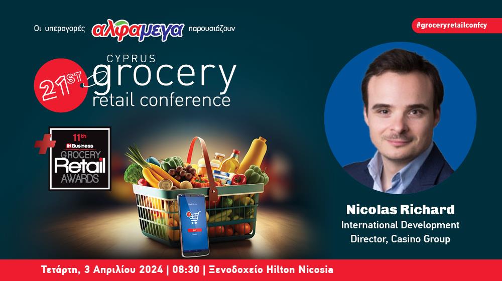 To 21ο Cyprus Grocery Retail Conference θα υποδεχθεί τον Nicolas Richard, Διευθυντή Διεθνούς Ανάπτυξης του Casino Group ο οποίος με την τεράστια εμπειρία του, θα καθοδηγήσει το επιχειρηματικό κοινό του κυπριακού grocery retail παρουσιάζοντας τα σημεία-κλειδιά για ευελιξία και συνεχή προσαρμογή ώστε να αντιμετωπίσει τις διαρκείς προκλήσεις.