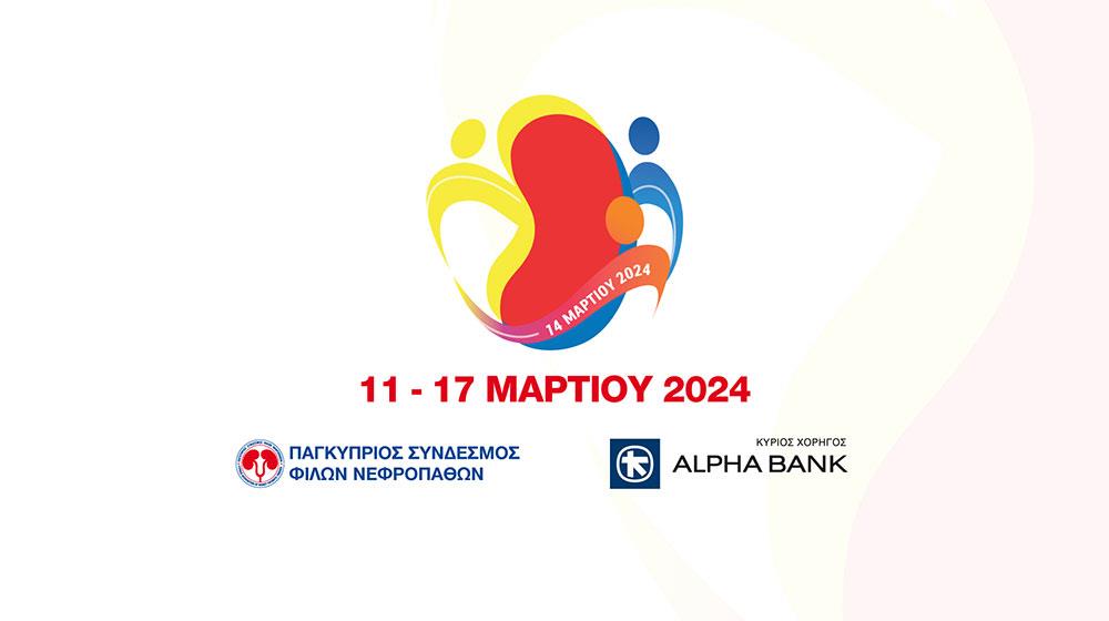 Η Alpha Bank Cyprus Ltd εκφράζει την αλληλεγγύη της προς τους ασθενείς με νεφρικές παθήσεις, και ως διαχρονικός σύμμαχος του Παγκύπριου Συνδέσμου Φίλων Νεφροπαθών είναι και φέτος ο Κύριος Χορηγός της 32ης Ετήσιας Εβδομάδας Ενημέρωσης και Πρόληψης της Χρόνιας Νεφρικής Νόσου.