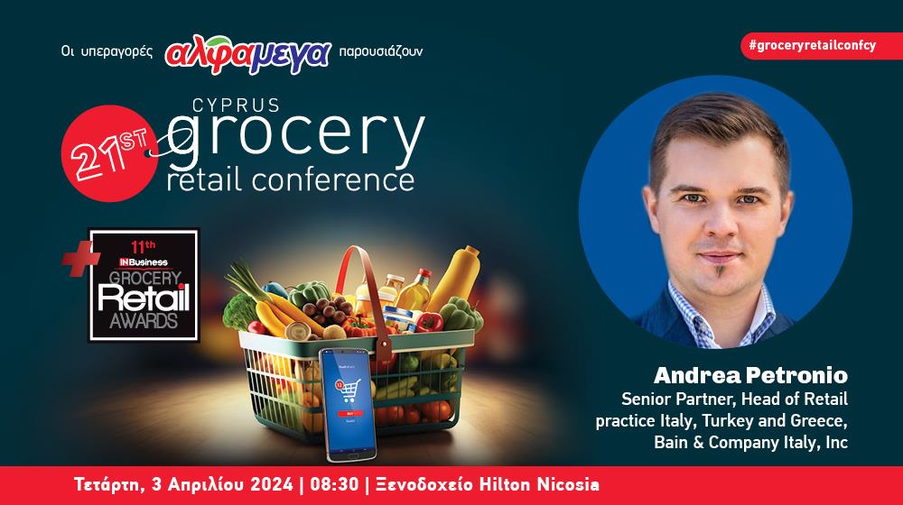 Το Cyprus Grocery Retail Conference θα πραγματοποιηθεί στις 3 Απριλίου στο Hilton Nicosia, με στόχο να παρουσιάσει τις τάσεις οι οποίες συμβάλλουν στην επιτυχή μετάβαση του τομέα στη νέα εποχή υπεύθυνης, βιώσιμης, πράσινης και ψηφιακής ανάπτυξης. Με παγκοσμίου φήμης προσωπικότητες και ομιλητές από την Κύπρο και το εξωτερικό, οι συμμετέχοντες θα έχουν την ευκαιρία να ενημερωθούν εις βάθος για όλες τις πτυχές και τα απαραίτητα συστατικά για επιτυχή λειτουργία των δραστηριοτήτων τους.