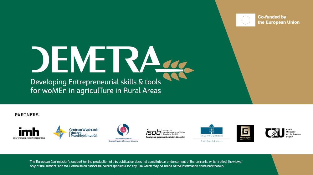 Κύριος στόχος του ευρωπαϊκού έργου DEMETRA ήταν το να προσδιορίσει τις ανάγκες και τα κενά σε ό,τι αφορά την κατάρτιση και τις δεξιότητες των γυναικών στον τομέα της αγροτικής επιχειρηματικότητας και να αναπτύξει τα εργαλεία που θα διευκολύνουν την κατάρτιση και τις συνολικές γνώσεις τους για Αντιμετώπισή τους.