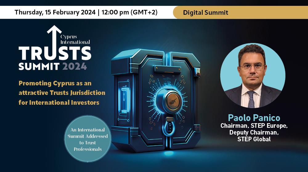 Το Cyprus International Trusts Summit, θα πραγματοποιηθεί στις 15 Φεβρουαρίου, διαδικτυακά, και θα διερευνήσει τον διαρκώς εξελισσόμενο κόσμο των κυπριακών εμπιστευμάτων. Μέσα από μια σειρά κεντρικών συζητήσεων, οι ομιλητές θα ξεδιπλώσουν τις περιπλοκές του κυπριακού νόμου περί καταπιστευμάτων, καθώς και τα χαρακτηριστικά, τα οφέλη και τις εξελισσόμενες τάσεις του.