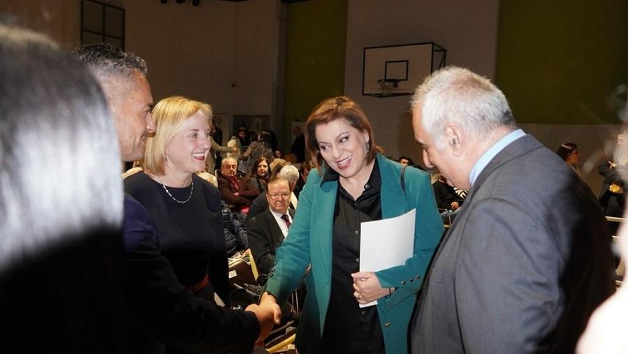 Η κ. Δέσποινα Παναγιά Πλαστήρα καλωσόρισε τον κ. John Christodoulou εκπροσωπώντας όλη την Γεροσκήπου, αγκαλιάζοντας τον με ευχές, ευλογίες και παραδοσιακά προϊόντα.
