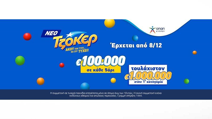 Το πιο προσοδοφόρο παιχνίδι της ΟΠΑΠ για τους Κύπριους φίλους του, δημιουργεί από την επόμενη κλήρωση ακόμη πιο ευνοϊκές προϋποθέσεις στη διεκδίκηση μεγάλων κερδών! Οι αλλαγές που φέρνει το νέο ΤΖΟΚΕΡ δίνουν τη δυνατότητα στους παίκτες να εξακολουθήσουν να διεκδικούν τα πολλά εκατομμύρια μέσω των Τζακποτ, αλλά και το εκατομμύριο με το οποίο θα αρχίζει πια η κάθε κλήρωση!