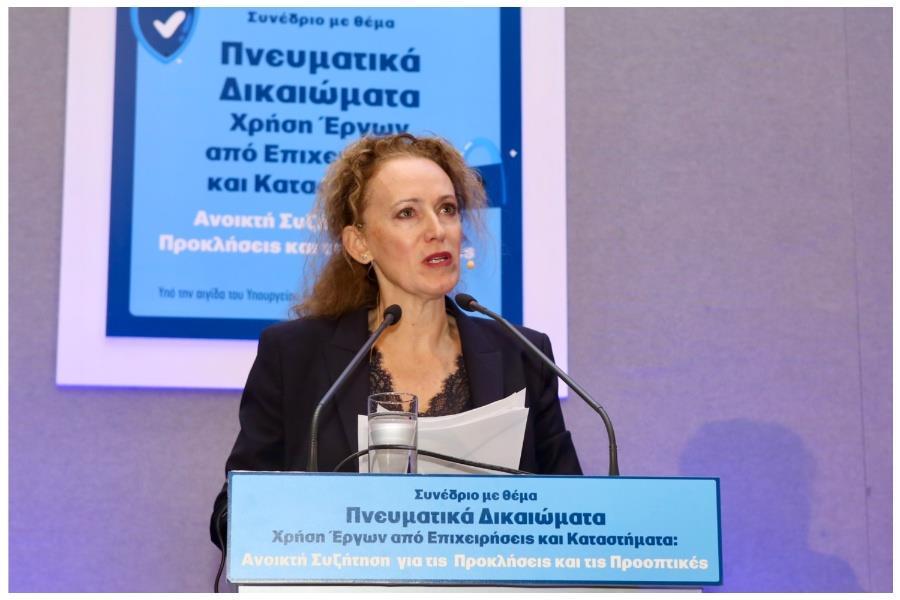 Σε εισαγωγική της ομιλία στο Συνέδριο «Πνευματικά Δικαιώματα – Χρήση Έργων από Επιχειρήσεις και Καταστήματα: Ανοικτή Συζήτηση για τις Προκλήσεις και τις Προοπτικές», η Καθηγήτρια είπε πως από την εμπειρία της στο παρελθόν παρατήρησε πως υπήρχαν θέματα έλλειψης συνεννόησης και κοινού παρονομαστή και πως η κατάσταση εκτονώθηκε με αμοιβαίες υποχωρήσεις.