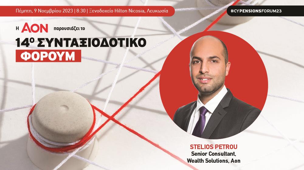Η τελευταία έρευνα της Aon θα παρουσιαστεί στο προσεχές 14ο Συνταξιοδοτικό Φόρουμ. Η έρευνα, που θα αναλυθεί από τον Στέλιο Πέτρου, Senior Consultant, Wealth Solutions της εταιρείας θα αναδείξει τις κύριες παραμέτρους σχεδιασμού που ακολουθούν οι Οργανισμοί καθώς και τις προτεραιότητες και προκλήσεις για τα επόμενα χρόνια.