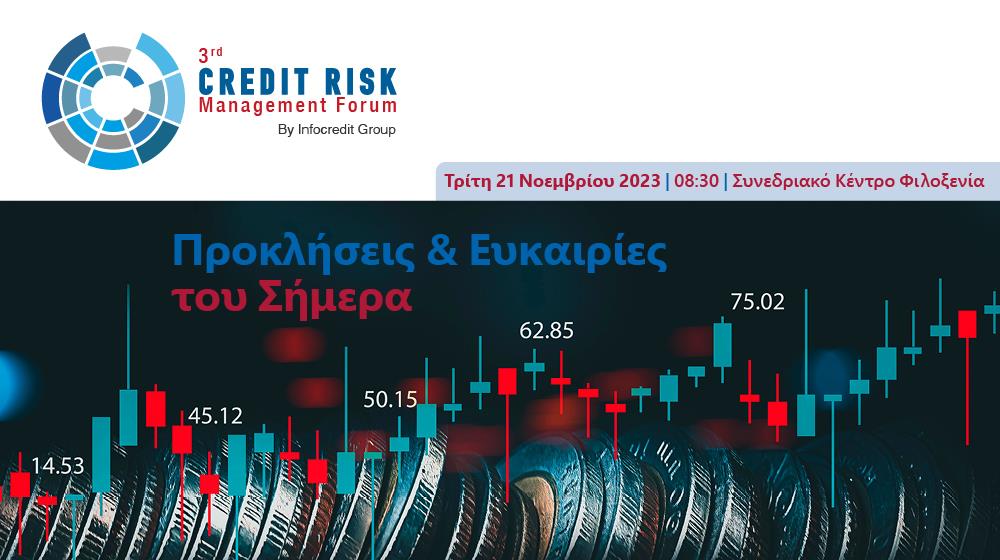 Το 3rd Credit Risk Management Forum: Προκλήσεις και Ευκαιρίες του Σήμερα πραγματοποιεί την Τρίτη 21 Νοεμβρίου 2023 στο Συνεδριακό Κέντρο Φιλοξενία η Infocredit Group. Στόχος η ανασκόπηση των κινδύνων αλλά και των προοπτικών για τις κυπριακές επιχειρήσεις μέσα στο περιβάλλον των διεθνών εξελίξεων και των αλυσιδωτών αντιδράσεων της παγκόσμιας αγοράς.