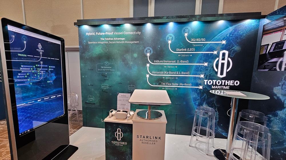 Σε μια εντυπωσιακή επίδειξη, η Tototheo Maritime παρουσίασε επίσης την κεραία Starlink. Αυτή η απευθείας επαφή πρόσφερε στους επισκέπτες μια πρωτοφανή ευκαιρία να εξοικειωθούν με την ευρυζωνική υπηρεσία διαδικτύου Starlink. Επιπλέον, μια διαδραστική οθόνη παρουσίαζε ένα πλοίο εξοπλισμένο με τις υπηρεσίες της Tototheo, αναδεικνύοντας τις δυνατότητες της εταιρείας. Οι επισκέπτες στον εκθεσιακό χώρο της Tototheo είχαν την ευκαιρία επίσης να ζήσουν μια μοναδική εμπειρία με τη χρήση του TM 360VR. Φορώντας γυαλιά εικονικής πραγματικότητας, βρέθηκαν σε ένα demo πλοίο, απολαμβάνοντας το όραμα της Tototheo για τις ναυτιλιακές εμπειρίες του αύριο.
