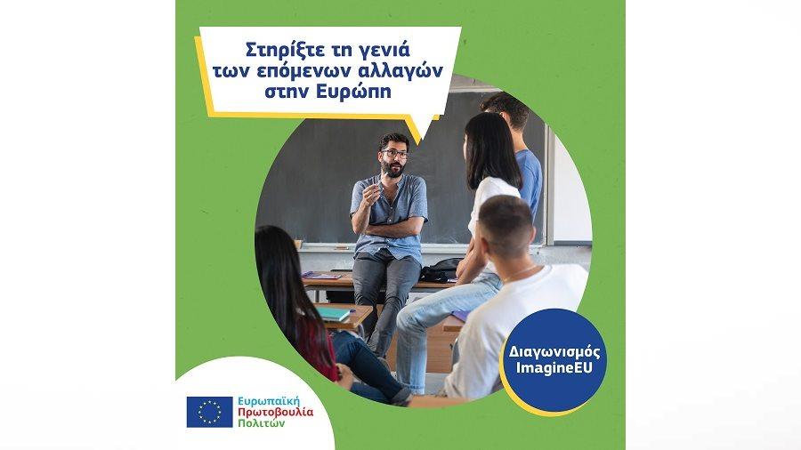 Οι μαθητές/ριες της δευτεροβάθμιας εκπαίδευσης σε όλη την ΕΕ καλούνται να συμμετάσχουν στον διαγωνισμό ImagineEU δημιουργώντας και κοινοποιώντας ένα σύντομο βίντεο σχετικά με μια καινοτόμο ιδέα η οποία θα μπορούσε να βελτιώσει τη ζωή στις κοινότητές τους και να αποτελέσει αντικείμενο ενωσιακής νομοθεσίας.